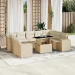 vidaXL Vrtna sedežna garnitura 10-delna z blazinami bež poli ratan
