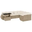 vidaXL Vrtna sedežna garnitura 10-delna z blazinami bež poli ratan