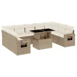 vidaXL Vrtna sedežna garnitura 10-delna z blazinami bež poli ratan