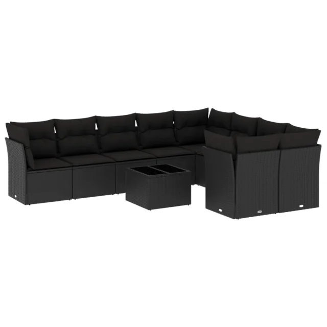 vidaXL Vrtna sedežna garnitura 10-delna z blazinami črn poli ratan