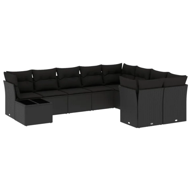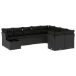 vidaXL Vrtna sedežna garnitura 10-delna z blazinami črn poli ratan