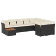 vidaXL Vrtna sedežna garnitura 10-delna z blazinami črn poli ratan