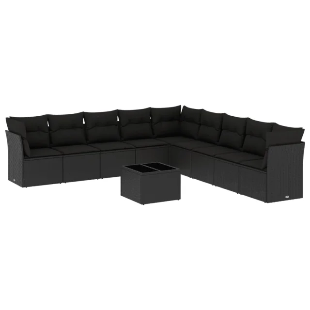 vidaXL Vrtna sedežna garnitura 10-delna z blazinami črn poli ratan