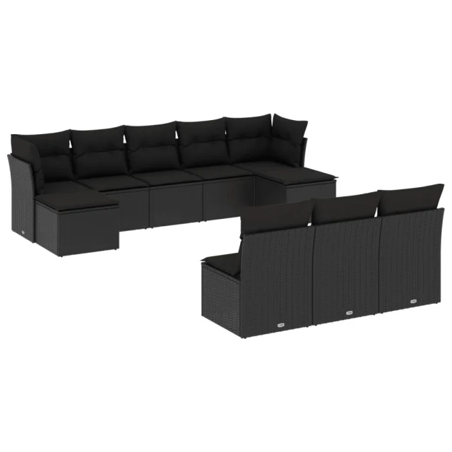vidaXL Vrtna sedežna garnitura 10-delna z blazinami črn poli ratan