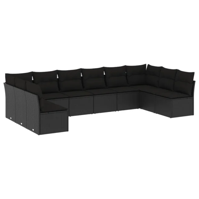 vidaXL Vrtna sedežna garnitura 10-delna z blazinami črn poli ratan