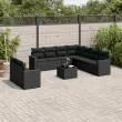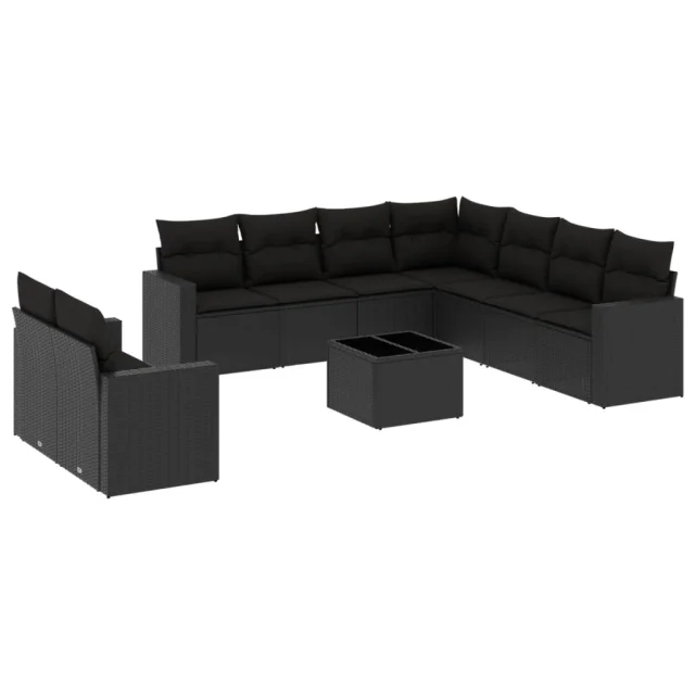 vidaXL Vrtna sedežna garnitura 10-delna z blazinami črn poli ratan