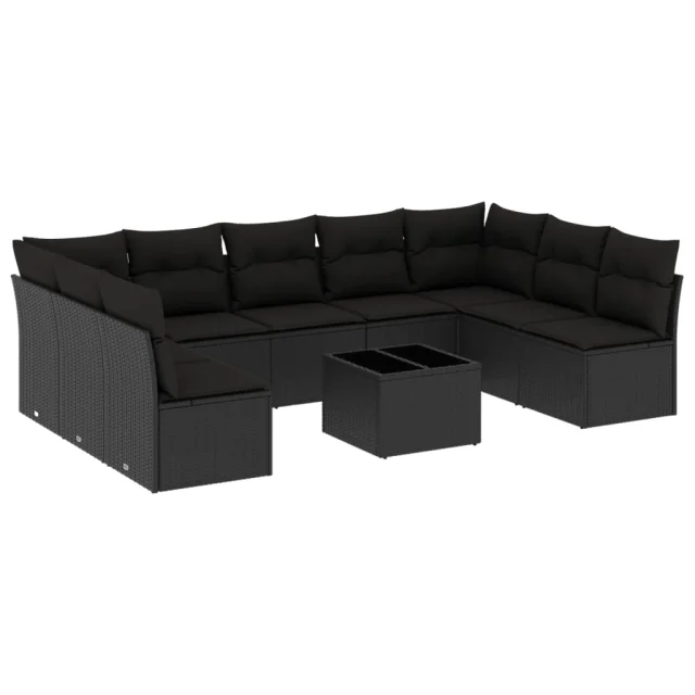 vidaXL Vrtna sedežna garnitura 10-delna z blazinami črn poli ratan