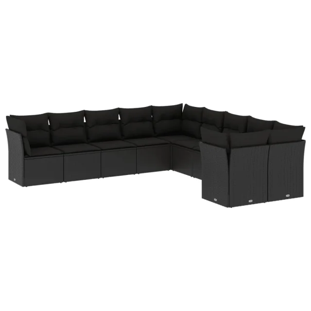 vidaXL Vrtna sedežna garnitura 10-delna z blazinami črn poli ratan