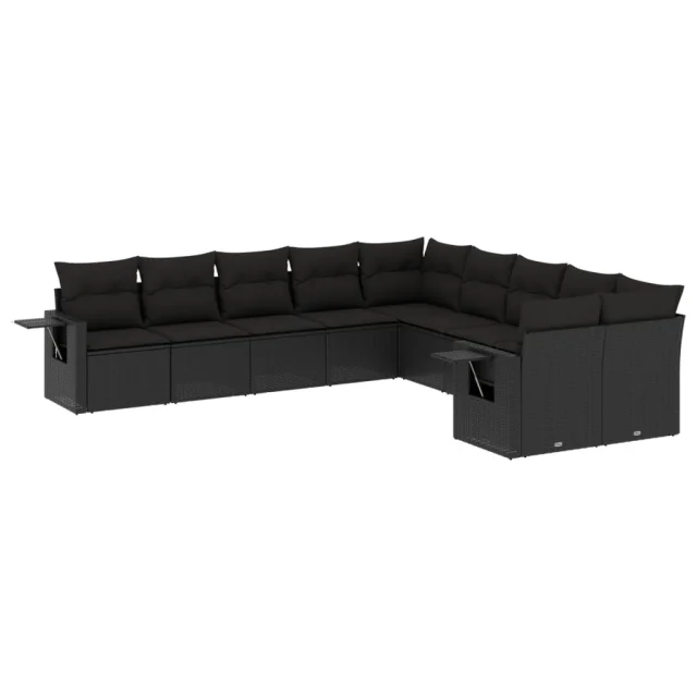 vidaXL Vrtna sedežna garnitura 10-delna z blazinami črn poli ratan