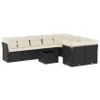 vidaXL Vrtna sedežna garnitura 10-delna z blazinami črn poli ratan
