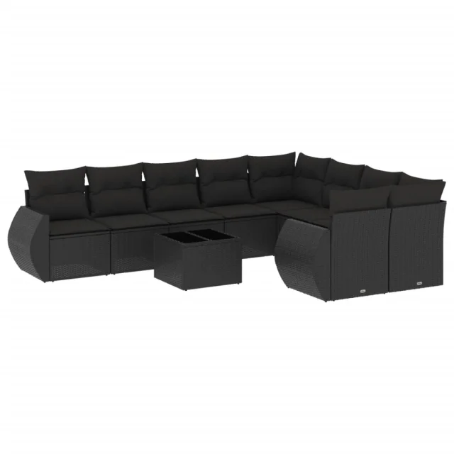 vidaXL Vrtna sedežna garnitura 10-delna z blazinami črn poli ratan
