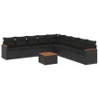 vidaXL Vrtna sedežna garnitura 10-delna z blazinami črn poli ratan
