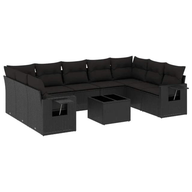 vidaXL Vrtna sedežna garnitura 10-delna z blazinami črn poli ratan