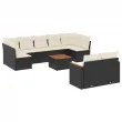 vidaXL Vrtna sedežna garnitura 10-delna z blazinami črn poli ratan