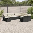 vidaXL Vrtna sedežna garnitura 10-delna z blazinami črn poli ratan