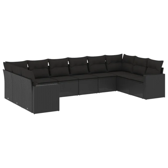 vidaXL Vrtna sedežna garnitura 10-delna z blazinami črn poli ratan