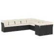 vidaXL Vrtna sedežna garnitura 10-delna z blazinami črn poli ratan