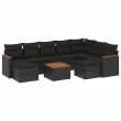 vidaXL Vrtna sedežna garnitura 10-delna z blazinami črn poli ratan