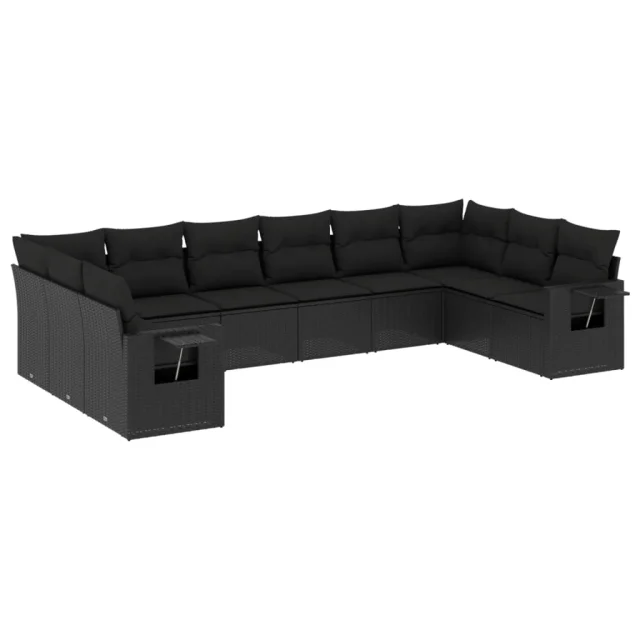 vidaXL Vrtna sedežna garnitura 10-delna z blazinami črn poli ratan