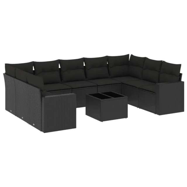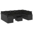 vidaXL Vrtna sedežna garnitura 10-delna z blazinami črn poli ratan