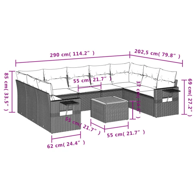 Ta vrtna sedežna garnitura je popoln dodatek za vaše dvorišče, teraso ali verando, saj zagotavlja udoben in vabljiv prostor za klepet z družino in prijatelji ali preprosto za sprostitev in uživanje na prostem.
