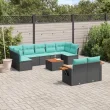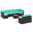 vidaXL Vrtna sedežna garnitura 10-delna z blazinami črn poli ratan