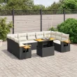 vidaXL Vrtna sedežna garnitura 10-delna z blazinami črn poli ratan