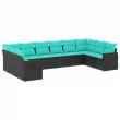 vidaXL Vrtna sedežna garnitura 10-delna z blazinami črn poli ratan