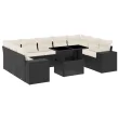 vidaXL Vrtna sedežna garnitura 10-delna z blazinami črn poli ratan