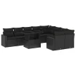 vidaXL Vrtna sedežna garnitura 10-delna z blazinami črn poli ratan