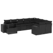 vidaXL Vrtna sedežna garnitura 10-delna z blazinami črn poli ratan
