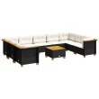 vidaXL Vrtna sedežna garnitura 10-delna z blazinami črn poli ratan