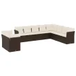 vidaXL Vrtna sedežna garnitura 10-delna z blazinami rjava poli ratan