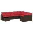 vidaXL Vrtna sedežna garnitura 10-delna z blazinami rjava poli ratan