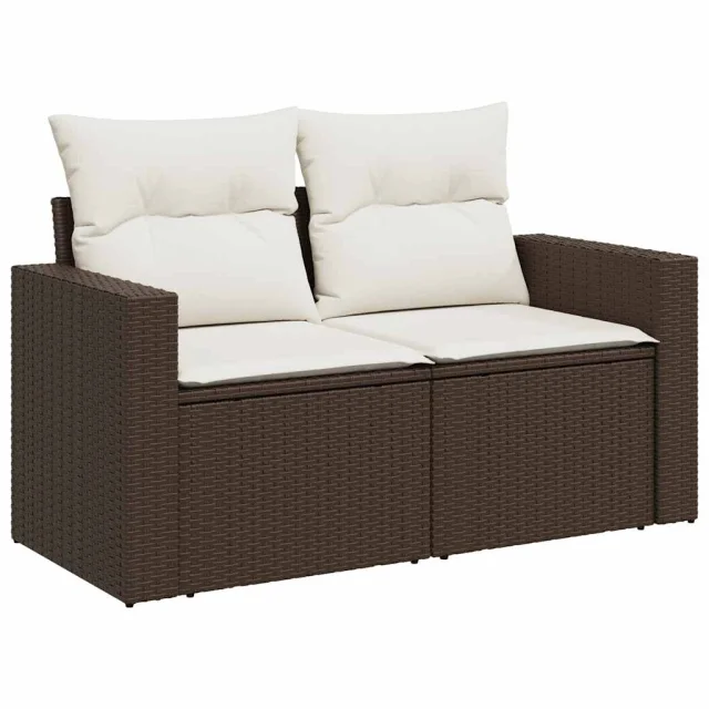 vidaXL Vrtna sedežna garnitura 10-delna z blazinami rjava poli ratan