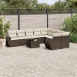 vidaXL Vrtna sedežna garnitura 10-delna z blazinami rjava poli ratan