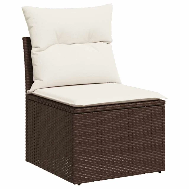 vidaXL Vrtna sedežna garnitura 10-delna z blazinami rjava poli ratan
