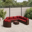vidaXL Vrtna sedežna garnitura 10-delna z blazinami rjava poli ratan