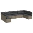 vidaXL Vrtna sedežna garnitura 10-delna z blazinami siv poli ratan