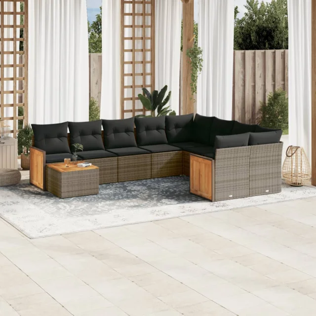 vidaXL Vrtna sedežna garnitura 10-delna z blazinami siv poli ratan