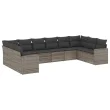 vidaXL Vrtna sedežna garnitura 10-delna z blazinami siv poli ratan