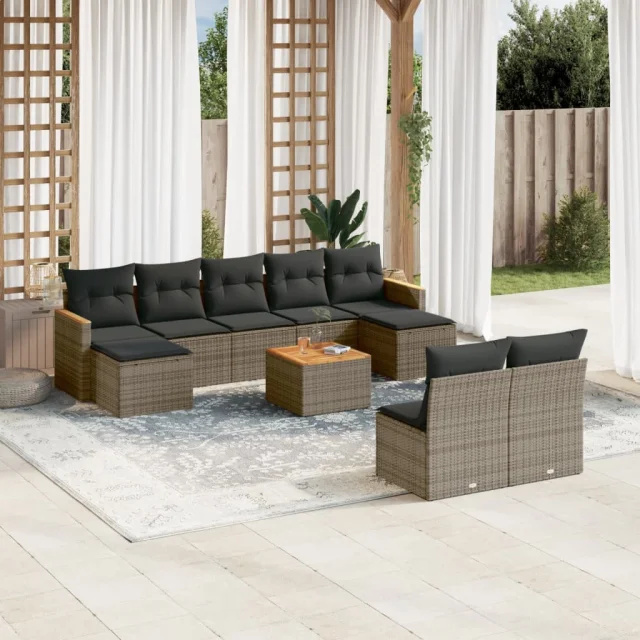 vidaXL Vrtna sedežna garnitura 10-delna z blazinami siv poli ratan