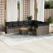 vidaXL Vrtna sedežna garnitura 10-delna z blazinami siv poli ratan