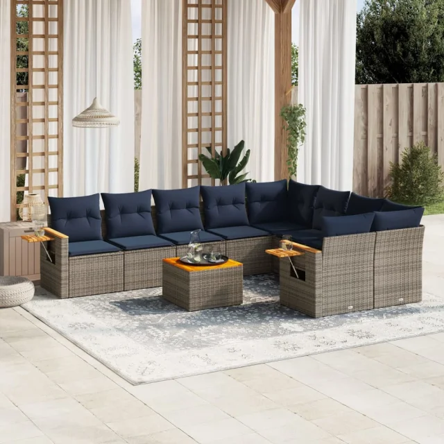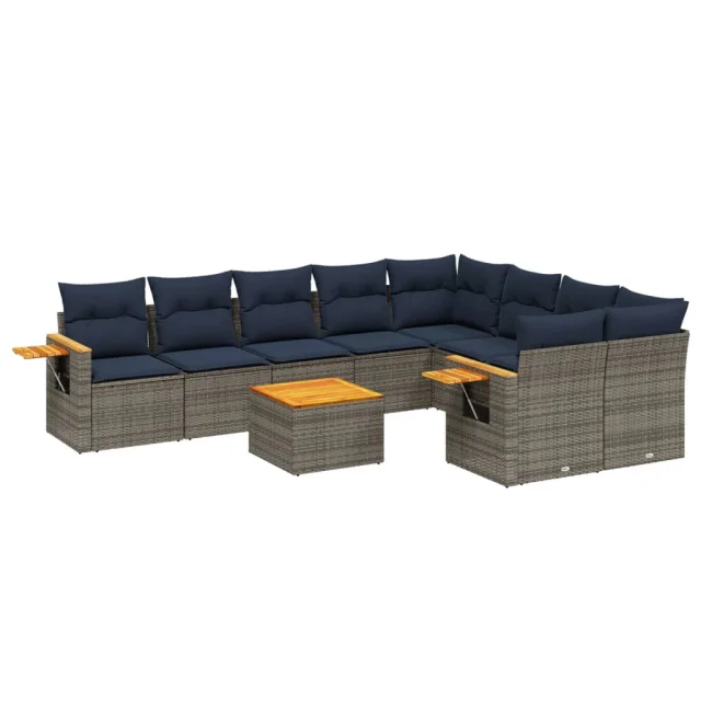 vidaXL Vrtna sedežna garnitura 10-delna z blazinami siv poli ratan