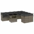 vidaXL Vrtna sedežna garnitura 10-delna z blazinami siv poli ratan