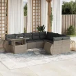 vidaXL Vrtna sedežna garnitura 10-delna z blazinami sv. siv poli ratan