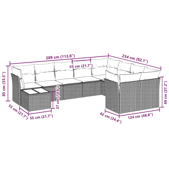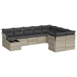 vidaXL Vrtna sedežna garnitura 10-delna z blazinami sv. siv poli ratan