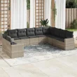vidaXL Vrtna sedežna garnitura 10-delna z blazinami sv. siv poli ratan