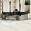 vidaXL Vrtna sedežna garnitura 10-delna z blazinami sv. siv poli ratan