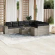 vidaXL Vrtna sedežna garnitura 10-delna z blazinami sv. siv poli ratan